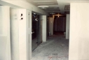 In reference to the second frame, this is looking in the opposite direction where the offices are to the right and the walk-in cooler to the left. At the end of the hall is the second stairway out of the basement and to the left of that the elevator.