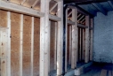 Looking from the rear of the building just after installation of the stairs. To be located under the intermediate stair landing the coat-check and entrance to the bar.