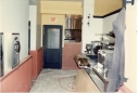 On the right is a wait station, the door in the back is double swing access to the kitchen, and on the left are located the men's and women's room. The photo dates itself because no one would install pay-phones any longer.