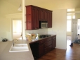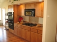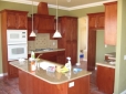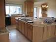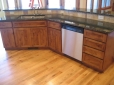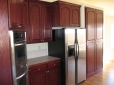 This is the kitchen from the previous frame. It is just after installation. This kitchen was made out of European steamed beech. It is an alternative to maple with slight red tinge.
