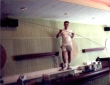 The bar and back-bar are original with exception of a new Corian top. Here is Bobby Paladino helping to set some trim.